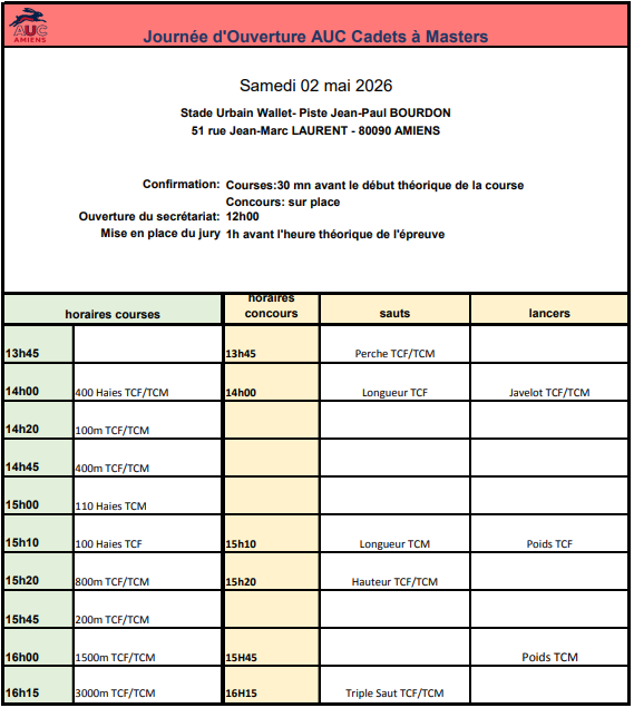 HORAIRES JOURNEE OUVERTURE AMIENS 2 MAI