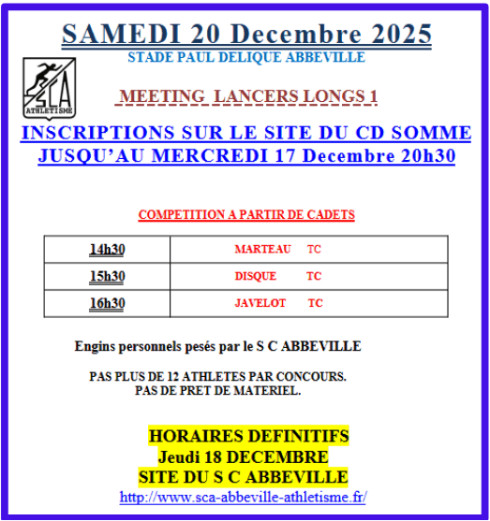 20-12-2025 Compétition lancers longs Stade Paul Delique